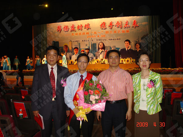 4月28日上午,廣州市委大禮堂張燈結(jié)彩、鑼鼓喧天,一派喜氣洋洋。廣州市委、市政府慶?!拔逡弧眹?guó)際勞動(dòng)節(jié)暨勞動(dòng)模范和先進(jìn)集體表彰大會(huì)在這里舉行。廣州市國(guó)研機(jī)械設(shè)備制造有限公司市場(chǎng)部經(jīng)理劉啟剛同志作為天河區(qū)6萬多家民營(yíng)企業(yè)唯一當(dāng)選的廣州市勞動(dòng)模范出席了表彰大會(huì)。廣東省委常委廣州市委書記朱小丹、市長(zhǎng)張廣寧等省市領(lǐng)導(dǎo)親自為劉啟剛等勞動(dòng)模范頒發(fā)廣州市勞動(dòng)模范獎(jiǎng)狀和榮譽(yù)證書并合影留念。