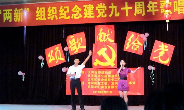 6月21日上午,“頌歌獻給黨”——天河區(qū)“兩新組織”紀(jì)念建黨九十周年歌唱比賽在龍洞街文化站如期舉行。